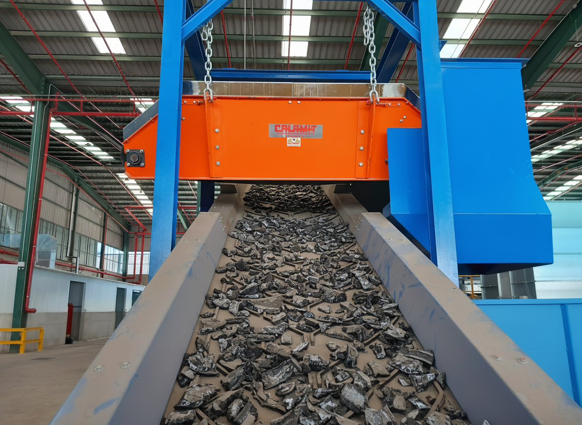 Questi sistemi elettromagnetici funzionano tramite una bobina avvolta su un nucleo che alimentata da corrente continua crea un campo magnetico opportunamente dimensionato in base alla distanza di attrazione necessaria tenendo conto dello strato e della tipologia del materiale trasportato, sul quale gira attorno un nastro estrattore che separa automaticamente, senza fermi di produzione, eventuale materiale ferroso, permettendo il recupero di materiale magneticamente permeabile e preservando da potenziali rotture le lame dei trituratori, dei mulini e dei macinatori, oltre a garantire un prodotto finale esente da acciaio ferro magnetico.
